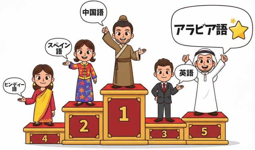 順位は統計年度によって入れ替わりますが、アラビア語は常に世界トップ5の常連。まさに「言語界のメジャーリーガー」です。