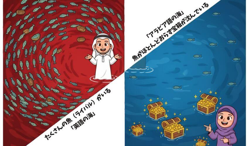 英語や中国語を話せる日本人は数多くいますが、アラビア語をビジネスレベルで扱える日本人は極めて稀です。これが何を意味するかというと、「替えのきかない人材」になれるということです。